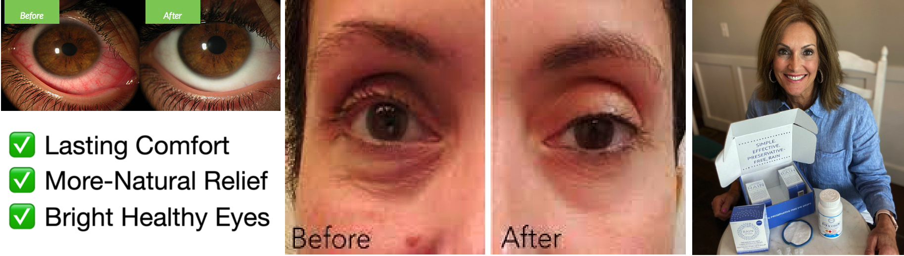 too. My eyes feel 20 years younger and I credit Rain Eye Drops for helping me get my